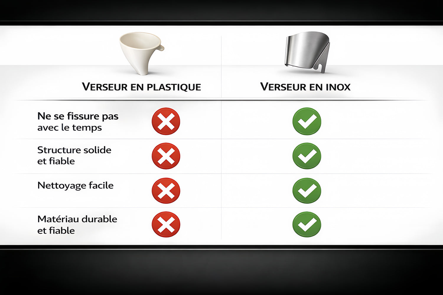 Conçu en acier inoxydable, ce verseur offre une solution durable et fiable, avec une surface lisse facile à nettoyer. Un choix de qualité pour une utilisation quotidienne.